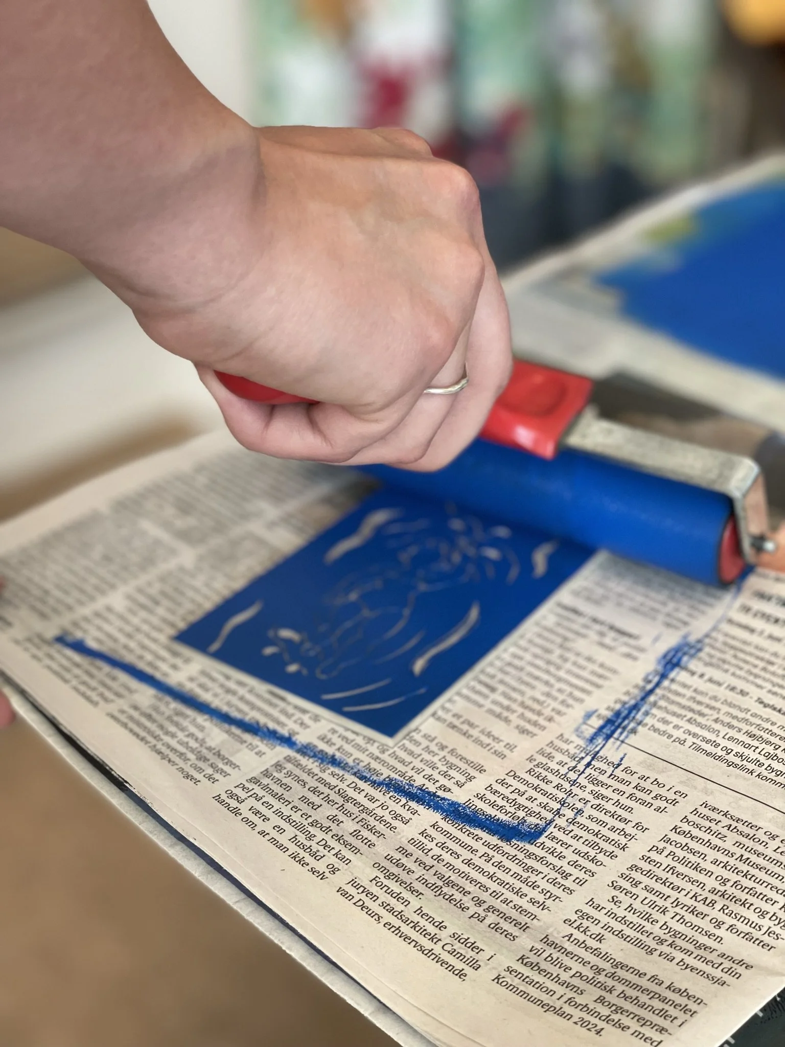 Jeg har materialer og ideer klar til dig, men du er også velkommen til at medbringe egne motiver. Vi trykker i forskellige farver, så du kan eksperimentere og skabe unikke værker.